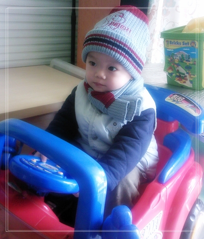 1岁9个多月的Q仔,能吃(正餐一大碗饭菜,,,比他妈都吃得多)、能睡(一天13-14个小时偶尔还会打呼噜)也好动(落地就跑、在宝贝乐园淘气堡能过通关了、在家搭椅子爬桌子。。。),这个冬天长了不少肉,,,也像个男人一样嗜肉,,,对世界越来越好奇可会说的还不太多,,,喜欢画画、喜欢看书,,,最近更是迷上了唐诗,,,每晚睡觉前必读3本书,,,还不能读错。。。某天终于能完整的叫声“外婆”了,,,某天突然又一个人叽叽咕咕的自己和自己说话,,,表情的变化那更是相当的丰富。。。要总结还可以用上两匹布,,,最后再说一点,,,臭小子的脾气也是渐长了,,,好在,胳膊拗不过大腿,,,在他老妈面前,,,自然是“姜还是老滴辣”哈~~~
