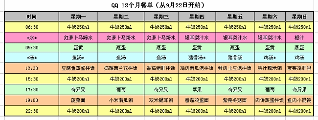 1、关于鸡蛋:由于近期天干物燥,BB对于炒鸡蛋不太感兴趣,故本月全部换成蛋黄或蒸蛋